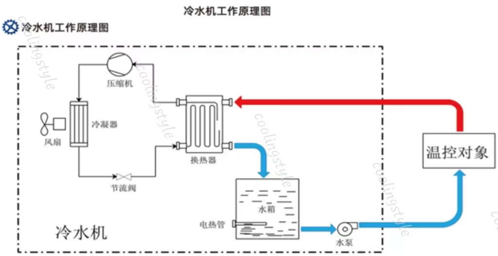 激光冷水機是一種制冷設備,用于給設備降溫并使材料保持恒溫狀態,在工業制造中應用廣泛,主要包括有壓縮機、冷凝器、蒸發器和水泵等主要配件。水泵作為重要的組件之一,為冷水機系統提供水流量和壓力,在長期使用過程中,激光冷水機出現水泵的故障是比較常見的。