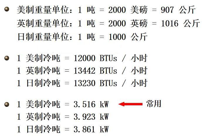 千瓦/冷噸 = 輸入功率 / 機(jī)組制冷量