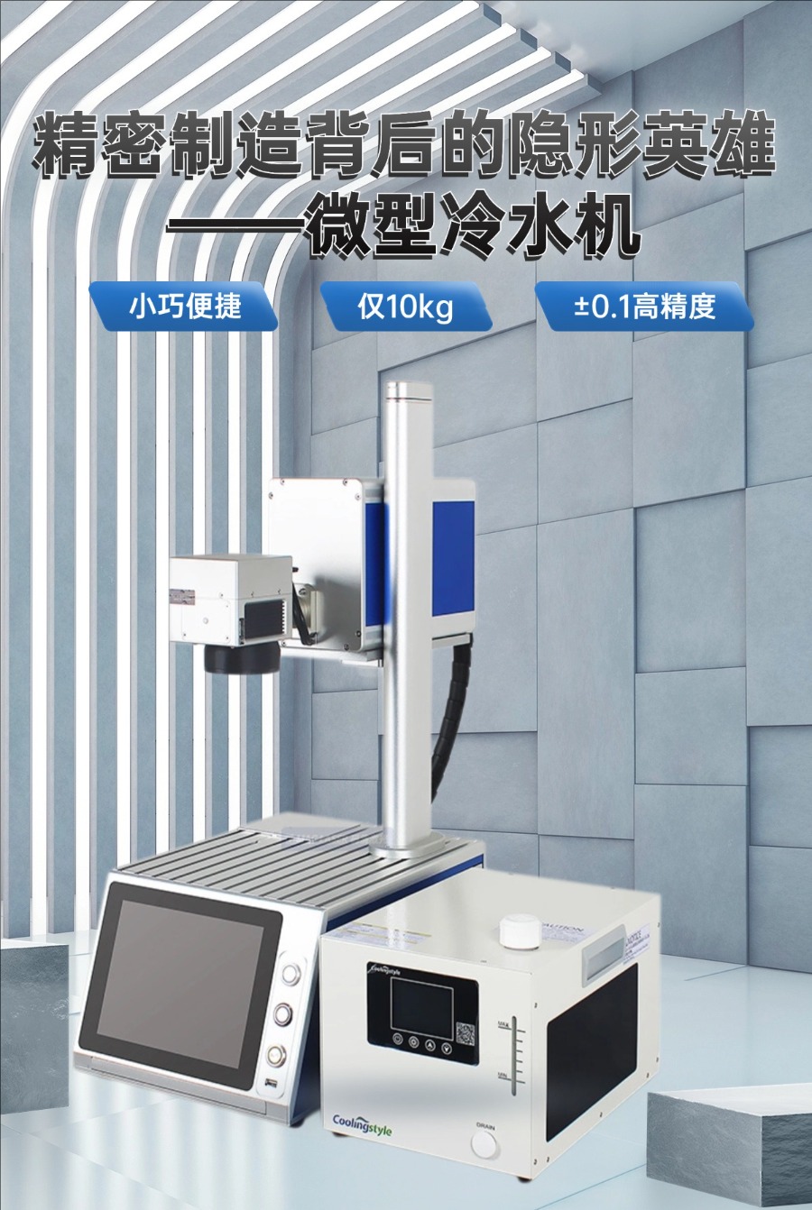 在這個科技日新月異的時代,精密制造領域正經歷著前所未有的變革。紫外激光打標技術,以其卓越的精度與環保特性,傲然屹立于標識技術的前沿。而在這場追求極致的精密舞蹈中,酷凌時代的Q420微型冷水機,如同一位默默奉獻的守護者,以其超凡的冷卻能力,為紫外激光打標機的穩定運行提供了堅實的后盾。