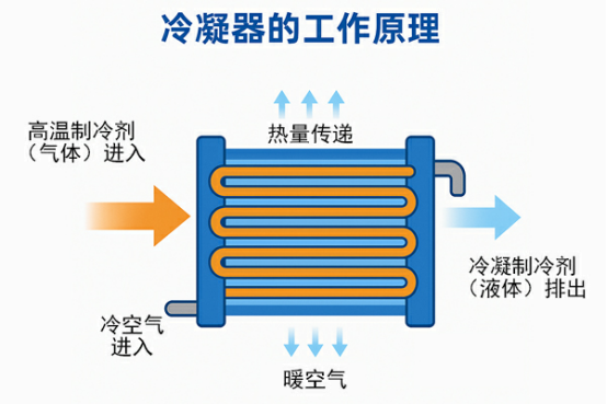 在制冷循環中,冷凝器起到承上啟下的作用: