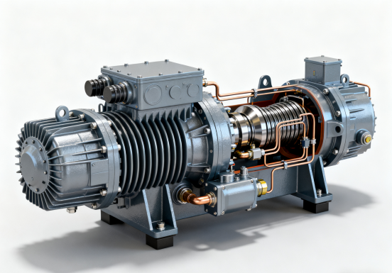 壓縮機是整個制冷循環的動力核心,它通過壓縮制冷劑氣體,使其壓力與溫度升高,然后輸送至冷凝器進行放熱冷凝。壓縮機的性能、控制方式與能效比,決定了冷水機的整體表現。