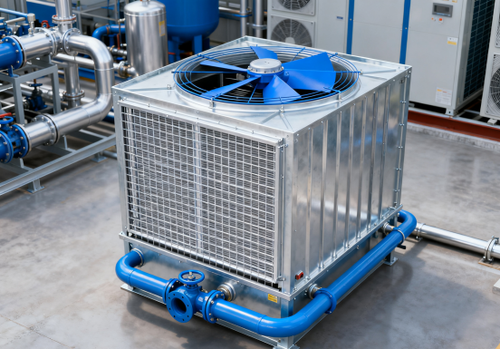 如果說壓縮機負責“制造冷量”,那么冷卻塔則負責“排出熱量”。在制冷系統中,壓縮機壓縮后的高溫高壓氣體需要在冷凝器中釋放熱量,而冷卻塔的作用,就是利用空氣對流與水的蒸發作用,將這些熱量帶走。