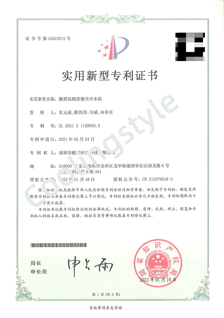 恭喜酷凌時代又一專利申請成功,深圳市酷凌時代科技有限公司是一家專業致力于微環境降溫技術研發、方案設計和產品制造的國家高新技術企業。公司始終堅持走“自主知識產權”、“產學研結合”之路,酷凌時代擁有相關知識產權50余項。目前公司產品已經逐漸形成小型高精度激光冷水機助力工業互聯、智能穿戴式人體降溫系統推動軍民融合兩條產品系列。尤其是針對工業激光設備配套使用而研發及生產的微型激光冷水機、紫外激光冷水機、高精度激光冷水機、3D打印激光冷水機、紫外打標冷水機、超快激光冷水機等降溫設備,經過多年深耕,在降溫行業已有了長足深入的發展,目前在國防、科技、工業、農業、健康等諸多領域得到了迅猛發展和廣泛應用。