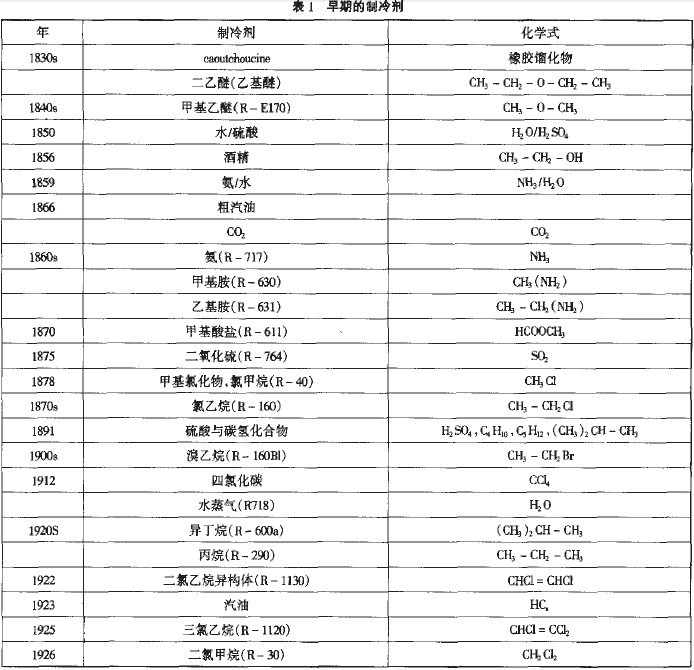 1930年,Medgley發表的第一份關于氟化制冷劑的文獻中,說明了如何根據所要求的沸點,將碳氫化合物氟化或氯化,并說明了化合物成分將如何影響可燃性和毒性。CFC-12(R-12)的商業化開始于1931年。隨后,1932年CFC-11(R-11)也被商業化。于是,出于安全性的考慮,一些CFCs和HCFCs陸續得到了開發,逐漸替代了已使用100年之久的那些早期制冷劑(除NH3外),而成為二十世紀制冷劑的主要潮流,在制冷空調和熱泵系統中得到了廣泛應用。