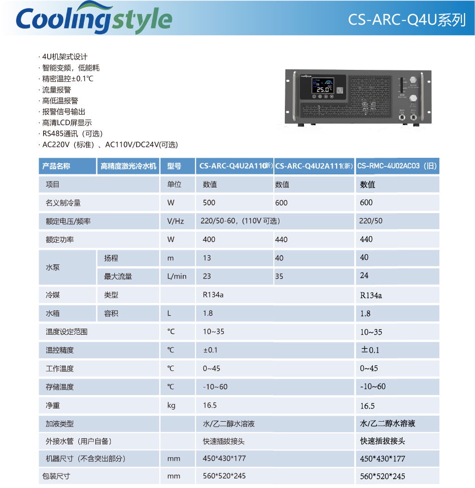 助力光伏產業,我司研發生產的高精度冷水機組在激光系統連續穩定運行扮演著很重要的角色,隨著激光技術的發展、激光的轉換效率不斷在提升,目前大都在5%-10%,意味著產生大量的熱量,主要的散熱方式主要有風冷和水冷,但在高熱量、高穩定性的需求下,風冷的方式遠無法滿足應用需求;而電池片的電路雕刻,對激光的光斑精度已達納米級別,光源器件的工作穩定性是影響光斑精度的核心部件,故冷水機組在此系統中不只扮演者降溫的角色,其高精度的溫控性能也是重要參數之一,助力光伏生產,我司為目前應用于激光雕刻工藝的激光器研發了以下三種型號的冷水機組,分別適用于綠光,光纖、固體這三種激光器。