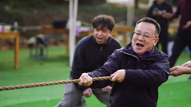 酷凌時(shí)代和慧川子公司各派出 12 人參加,三局兩勝的賽制讓比賽充滿了懸念與刺激。隨著哨聲響起,雙方隊(duì)員緊握繩子,咬緊牙關(guān),使出渾身解數(shù),腳蹬地、身體后仰,臉漲得通紅,啦啦隊(duì)的加油吶喊聲震耳欲聾,仿佛連空氣都凝固了。經(jīng)過一番激烈的角逐,最終勝負(fù)揭曉,但大家臉上洋溢的都是滿足與快樂。這場拔河比賽,不僅比出了勝負(fù),更拉近了團(tuán)隊(duì)成員間的距離,增強(qiáng)了彼此間的信任與默契。