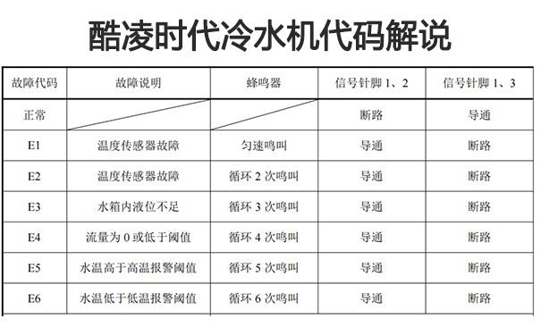 酷凌時(shí)代冷水機(jī)故障代碼基本說明如下所示: