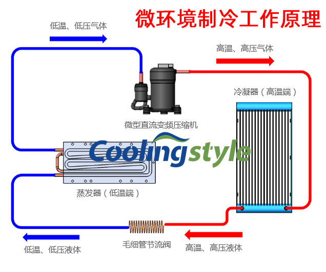 毛細管在小型冷水機制冷系統中既是流量的調節閥,又是制冷設備中的節流閥,主要安裝在紫外激光冷水機的干冷凝器和蒸發器之間。其主要作用是使高壓常溫的制冷劑液體在流經毛細管時節流降壓,變為低溫低壓制冷劑濕蒸氣(大部分是液體,小部分是蒸汽)進入蒸發器,在蒸發器內汽化吸熱,而達到制冷降溫的目的。