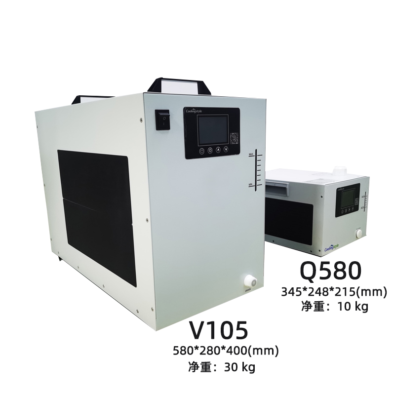 酷凌時代高精度激光冷水機V105,適用于各種激光器冷卻降溫,名義制冷量1600W,溫控精度達±0.1℃,適用于各種納秒、皮秒激光器,尤其適用于10-30W的紫外納秒激光器,30-60W綠光激光器,300-500W紅外激光器,以及10-15W紫皮、0-45W綠皮、0-70W紅皮激光器等。