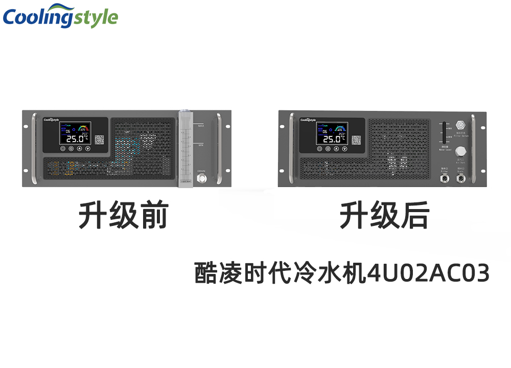 酷凌時代,堅持創新,2022年酷凌時代激光冷水機再次功能升級,熱銷款4U02及5U03型號都做了升級,下面以4U02為例,酷凌小編簡單跟大家介紹下該款升級后的紫外激光冷水機的初次使用說明,其主要差別在于冷水機的加水操作,在此專門針對升級后的自動加水功能做介紹具體如下: